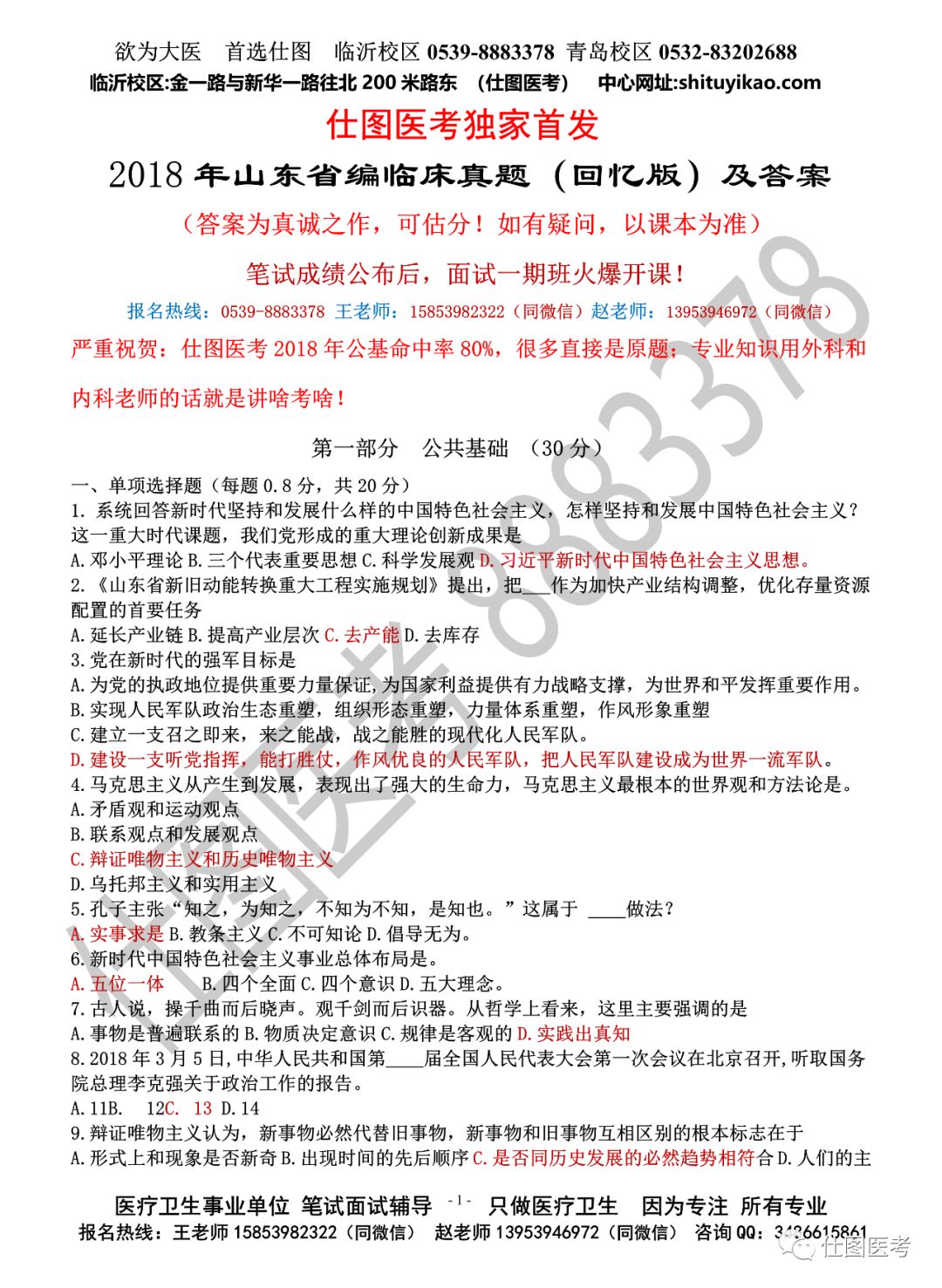 嚴(yán)重祝賀:仕圖醫(yī)考2018年公基命中率80%,很多直接是原題;